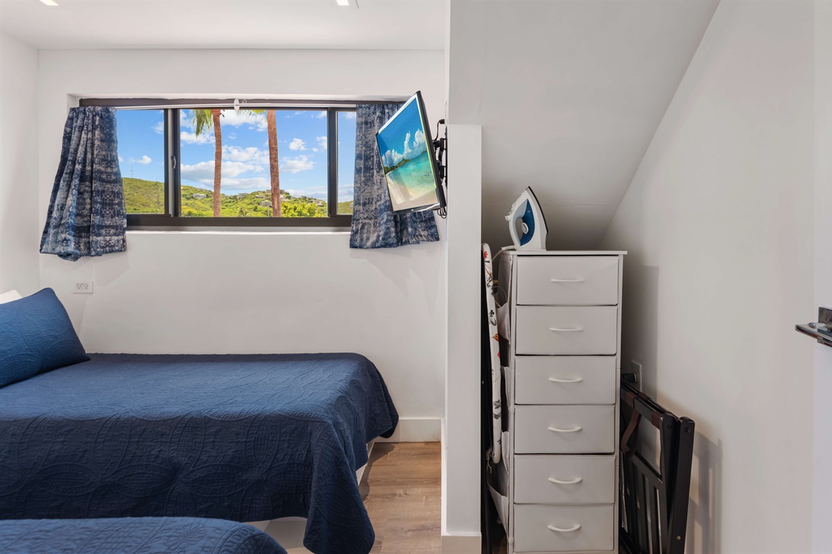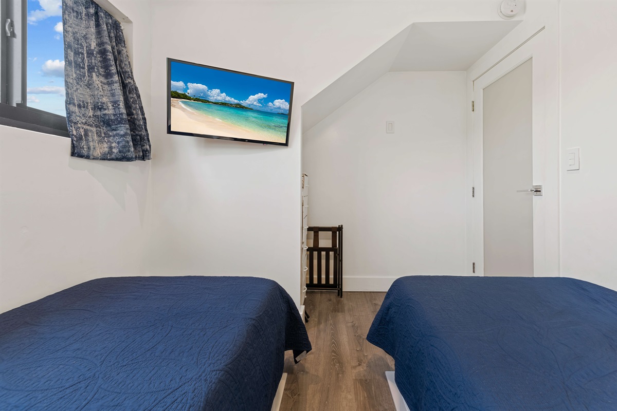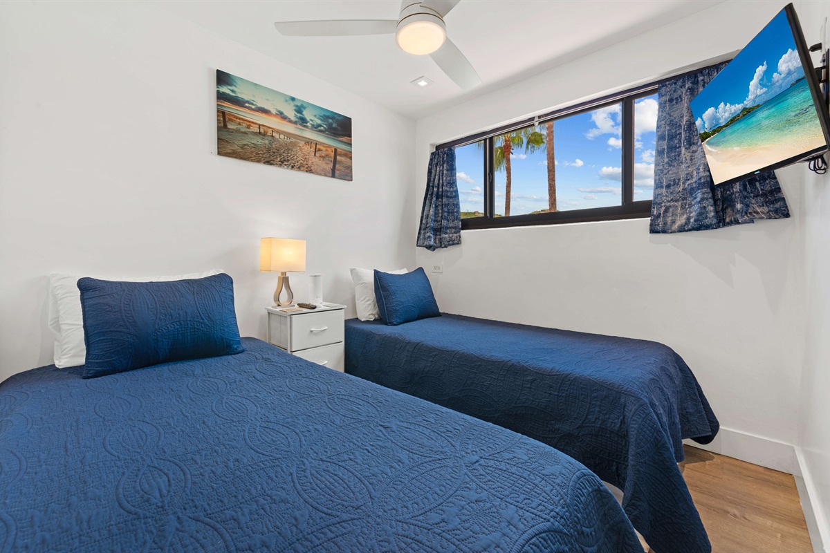 Bedroom 2 - Two twin beds with memory foam mattresses, ceiling fan, Smart TV