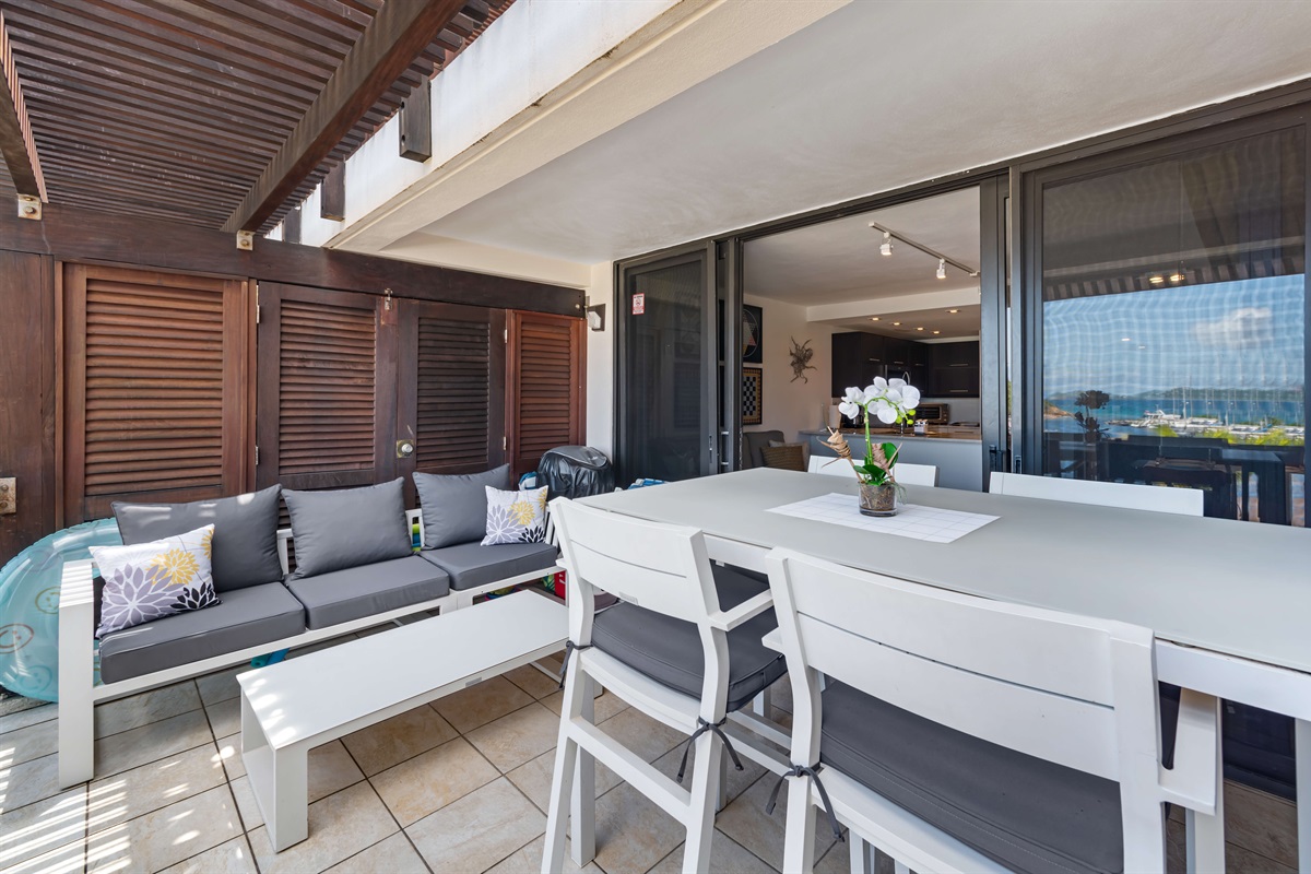 • Large balcony off living room with outdoor dining table